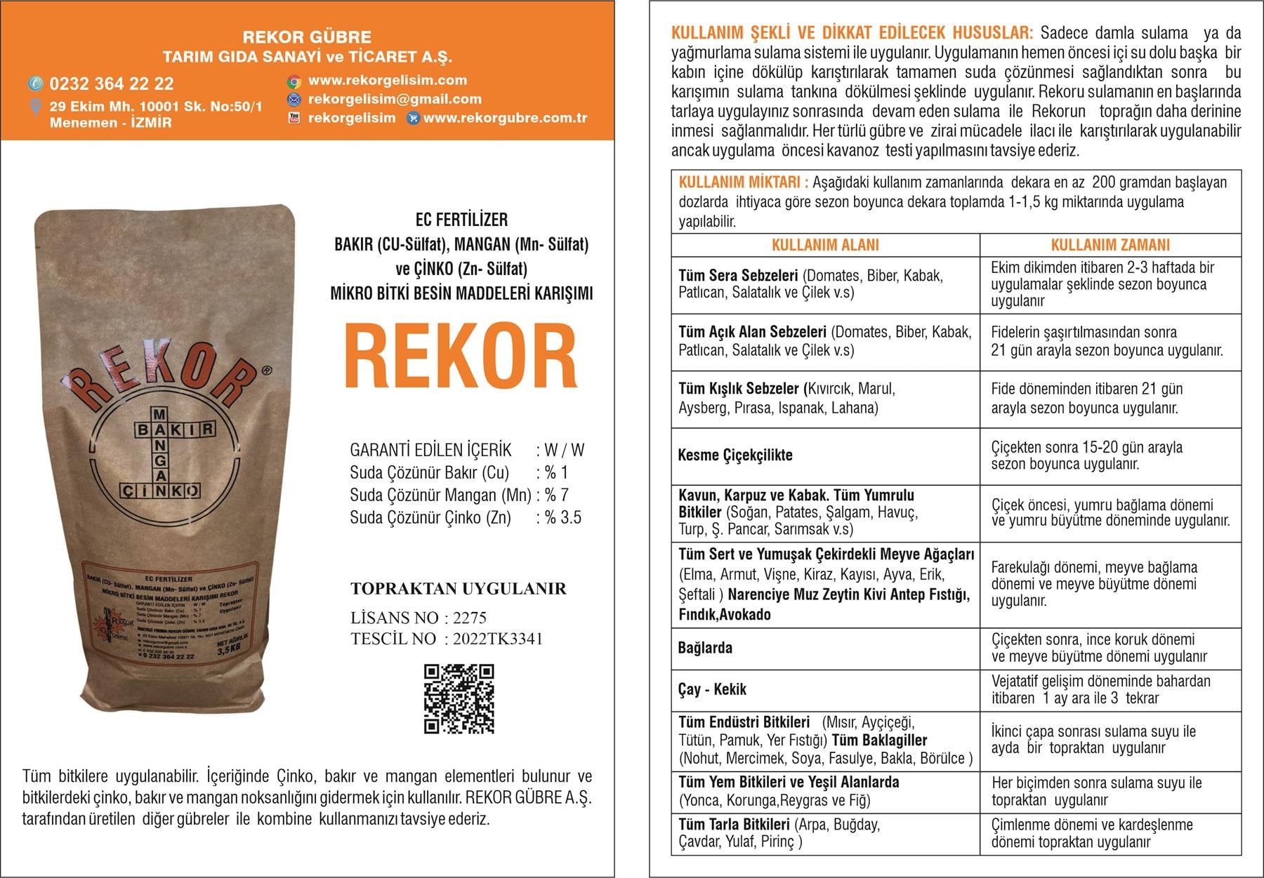 3,5 Kg Rekor Ec Fertilizer Bakır Mangan Çinko Mikro Bitki Besin Maddeleri Karışımı